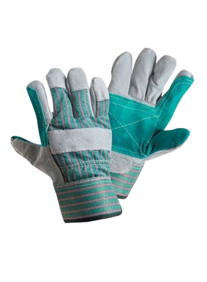 Спилок натуральной кожи сорта ВС мягкий, плотный, толщина 1,3+/-2 мм. На ладонной части и пальцах усиление дополнительным слоем кожи, прошиты прочными двойными швами.